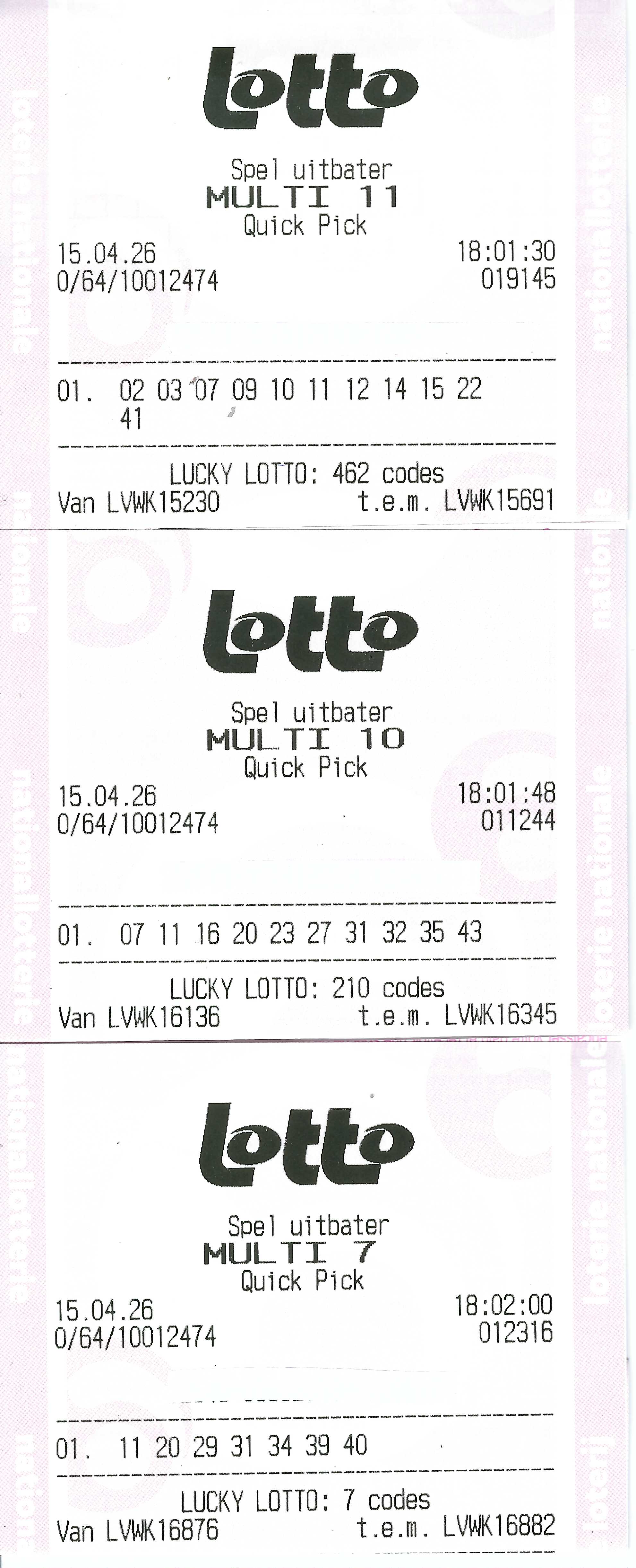 aan de Lotto van woendag 15 april