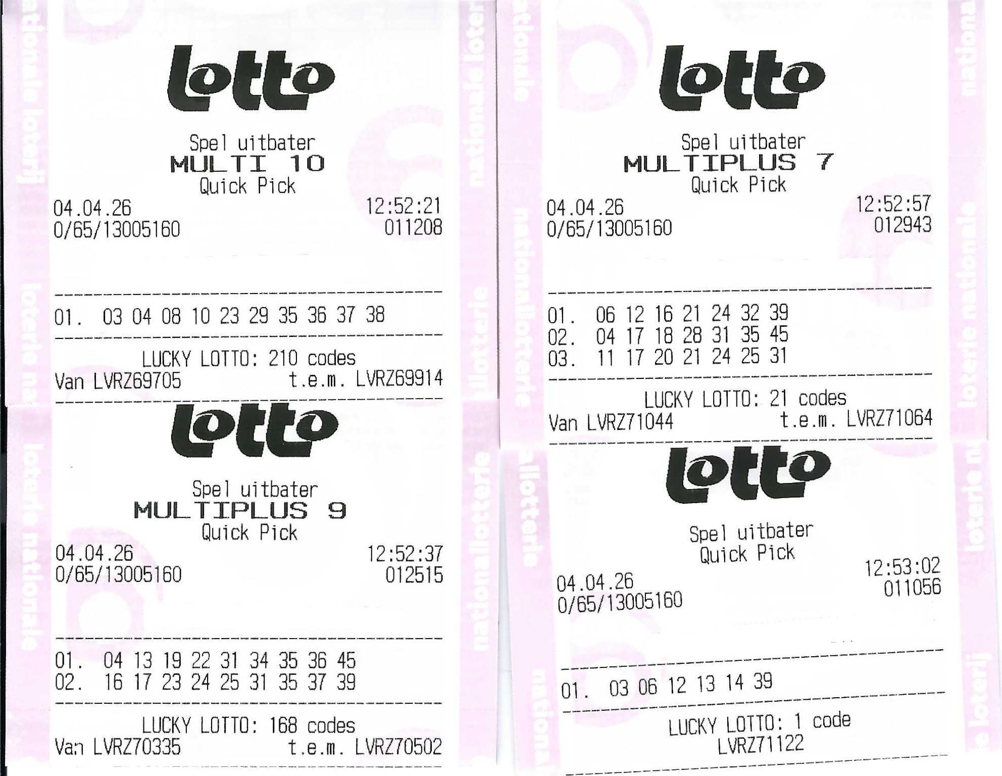 winstenverdelingstabel lotto multi en multi +